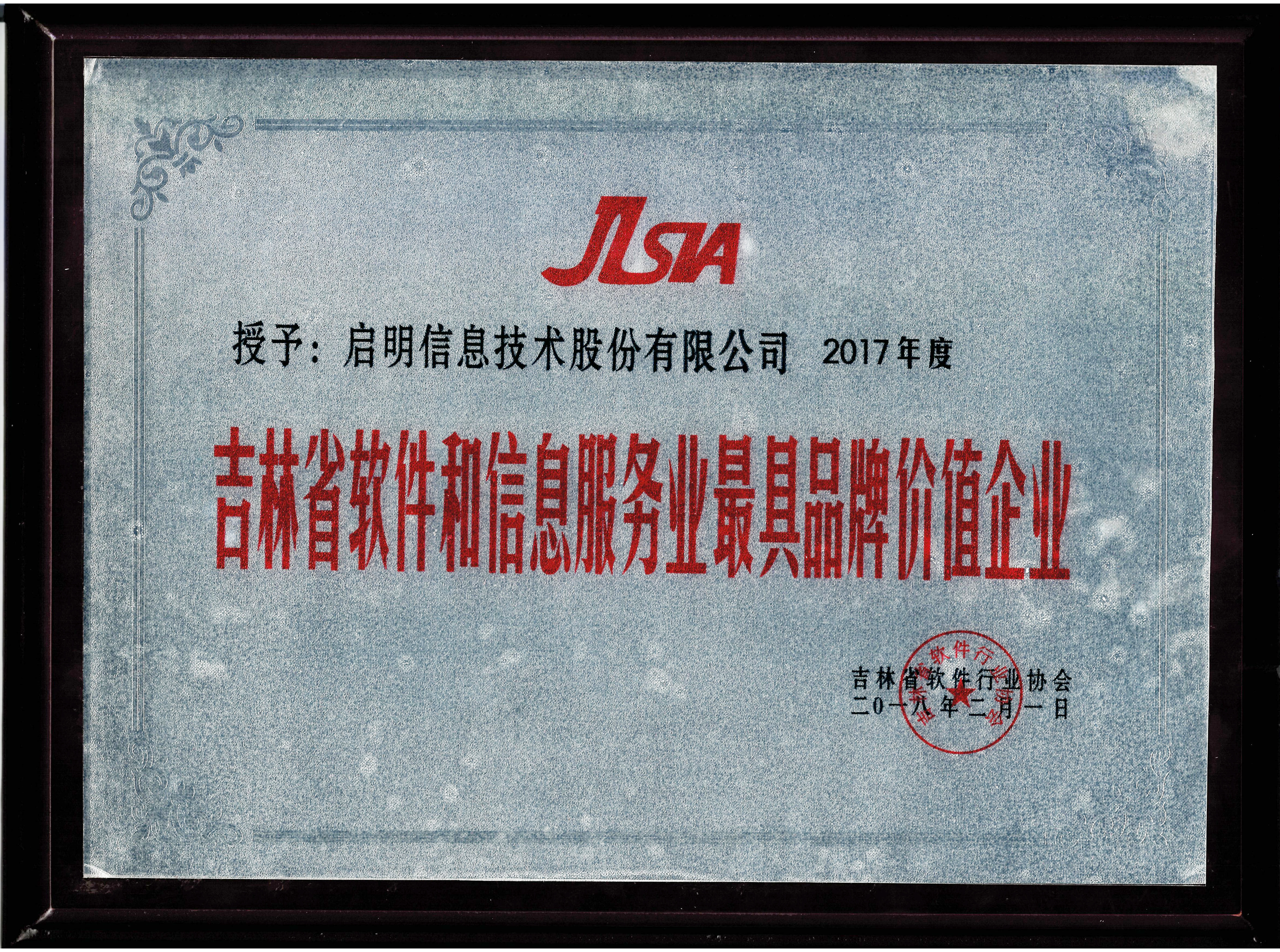 吉林省软件和信息服务业最具品牌价值企业-2017